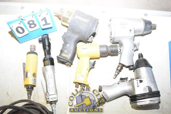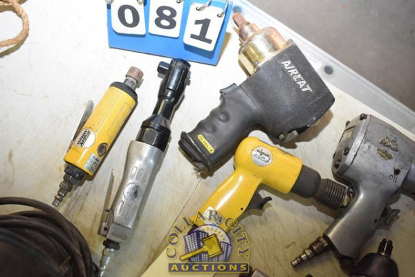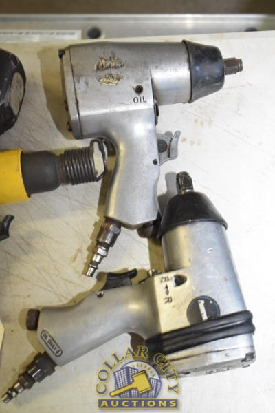 LOT OF AIR TOOLS INCLUDING 3 IMPACTS, AIR CHISEL, 1/2" DRIVE RATCHET AND CUT OFF TOOL