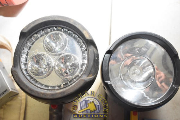 LOT OF 2 RECHARGEABLE FLASHLIGHTS, NO CHARGING CORDS