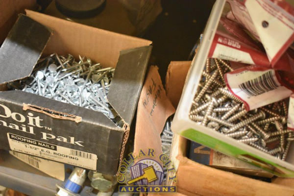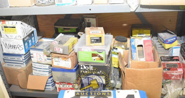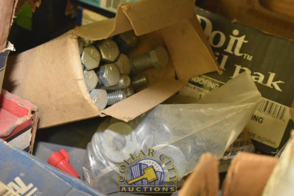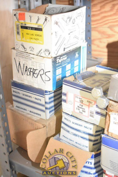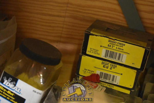 SHELF LOT CONSISTING OF RED HEAD ANCHORS, WASHERS, WIRE CONNECTORS, ETC.