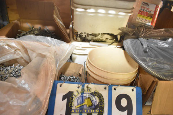 SHELF LOT OF SELF TAPPING SCREWS, BRACKETS