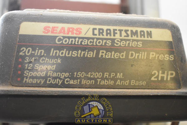 SEARS CRAFTSMAN 20" INDUSTRIAL RATED DRILL PRESS, 2 HP, 3/4" CHUCK, 12-SPEED