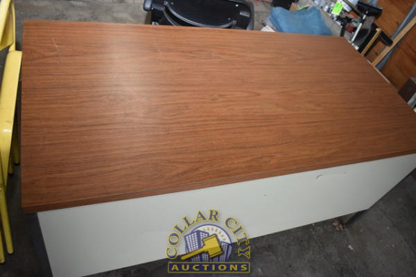 DESK WITH OFFICE CHAIR AND FOLDING CHAIR, DESK IS APPROX. 60" X 30"