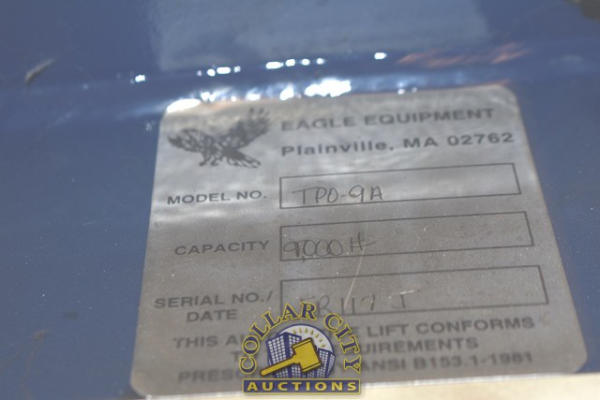 EAGLE LIFT MODEL TPO9A, 9000 LB CAPACITY, SN: FR117J, CUSTOMER RESPONSIBLE FOR REMOVAL, MUST PROVIDE INSURANCE OR BE REMOVED PROFESSIONALLY