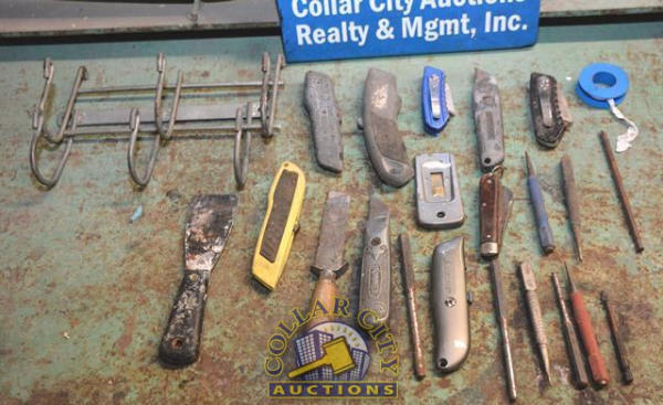 LOT OF UTILITY KNIVES AND SCRAPERS