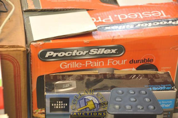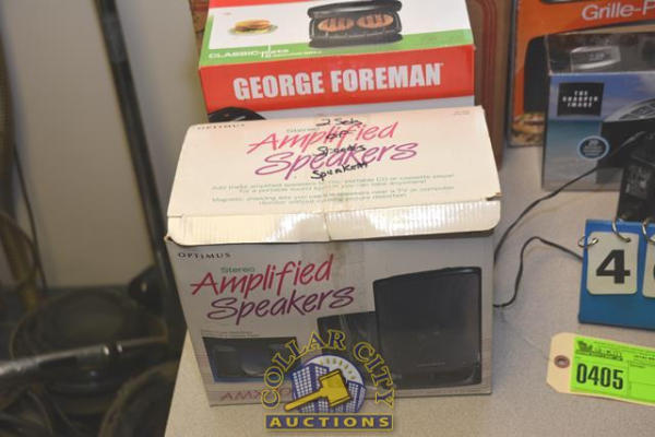 LOT CONSISTING OF SPEAKERS, GEORGE FORMAN SERVING GRILL, PUNCH BOWL, ETC.
