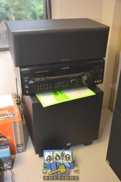 SONY SURROUND SOUND MODEL STRDE945 WITH OPTIMUS CENTER SPEAKER AND DCM POWERED BASE SPEAKER