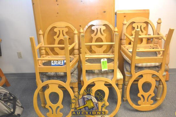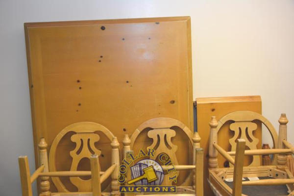 DINING ROOM TABLE WITH 6 CHAIRS, TABLE IS APPROX. 66" X 44", ALSO INCLUDES AN 18" LEAF