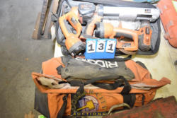 LOT OF RIDGID CORDLESS TOOLS INCLUDING FLASHLIGHTS, CAULK GUN, NO BATTERIES OR CHARGERS