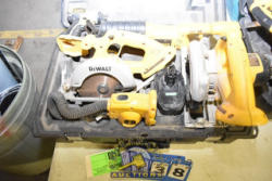 LARGE LOT OF DEWALT 18 VOLT CORDLESS TOOLS INCLUDING SAWZALL, JIGSAW, CIRCULAR SAW, DRILL, INCLUDES 3 BATTERIES AND CHARGER