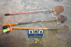 LOT OF SNOW SHOVELS AND FLAT SHOVELS