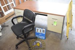 DESK WITH OFFICE CHAIR AND FOLDING CHAIR, DESK IS APPROX. 60" X 30"