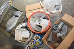 WALL LOT CONSISTING OF HOSE CLAMPS, PLUMBING FITTINGS, WINDSHIELD WIPERS, PAINT BRUSHES, ETC., DOES NOT INCLUDE FIRE EXTINGUISHER ATTACHED TO WALL
