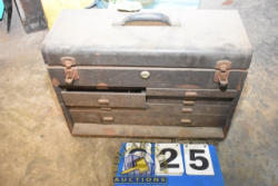 MACHINISTS TOOLBOX WITH TAPS, LEAD BRUSHES, CONCRETE DRILL BIT, ETC.
