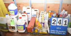 CABINET CONTENTS CONSISTING OF HIGH TECH SPRAY ADHESIVE, ENGINE DEGREASER, CARBURETOR CLEANER, INJECTOR CLEANER, ETC.