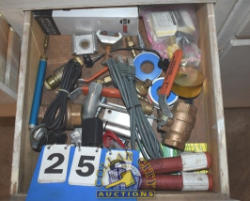DRAWER LOT CONSISTING OF COPPER VALVES, CORDS, AIR LINE FITTINGS, ETC.