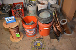 LOT OF COPPER GROUNDING CABLE, COPPER PIPE, COPPER LIGHTENING ROD BRACKETS (USED)