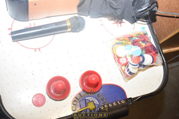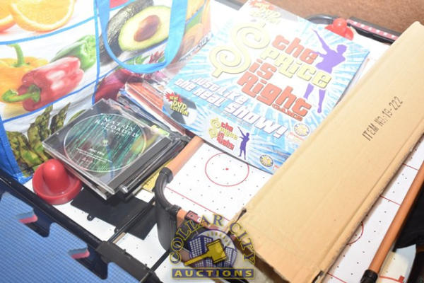 MINIATURE AIR HOCKEY TABLE, PRICE IS RIGHT GAME, VHS, CDs, ETC.