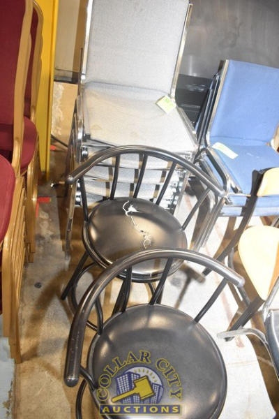 LOT OF 5 STACK CHAIRS, 2 BAR STOOLS, AND AN OFFICE CHAIR