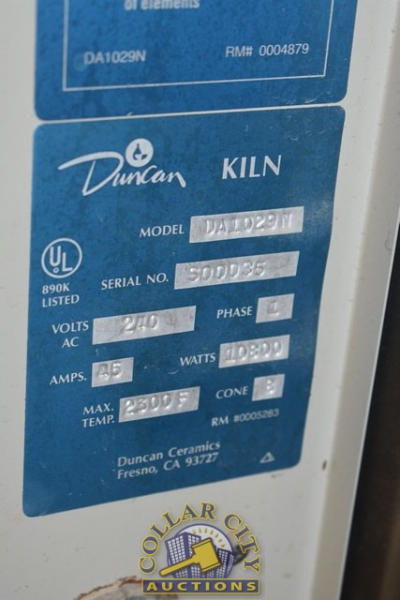 DUNCAN MODEL DA1029N, SINGLE PHASE, 250 VOLT KILN WITH BOXES OF ACCESSORIES