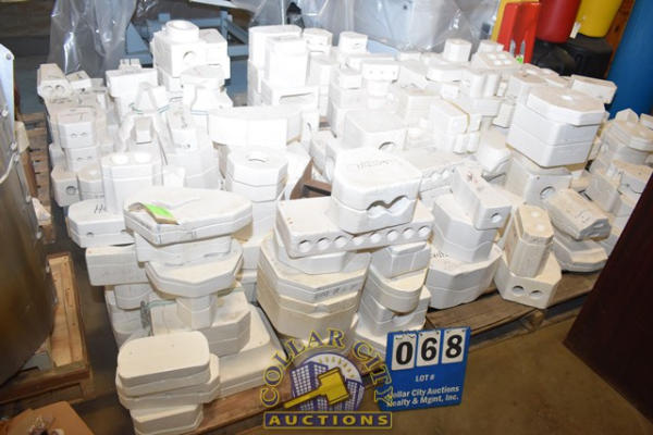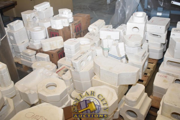 APPROX. 7 PALLETS OF CERAMIC MOLDS RANGING FROM CHRISTMAS TO TREE, EASTER EGG HOLDER, CORN DOGS, ETC.