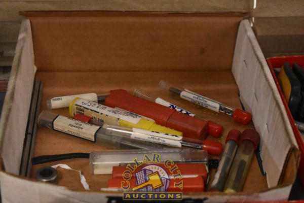 SHELF LOT CONSISTING OF END MILLS, DIAL INDICATORS, COUNTERSINKS, ETC.