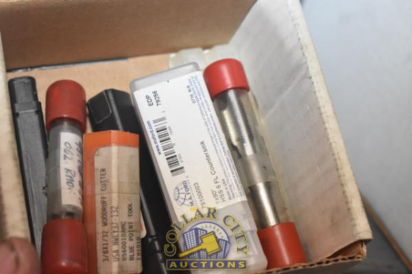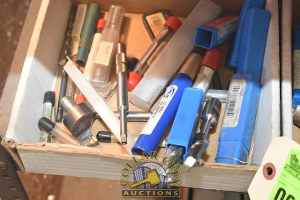SHELF LOT OF END MILLS, COUNTERSINKS, TAPS