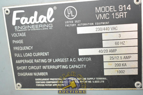 FADAL ENGINEERING VMC15XT VERTICAL MILLING CENTER WITH FADAL CNC 88HS DISPLAY, MODEL 914-15, 230/440, 3 PHASE POWER