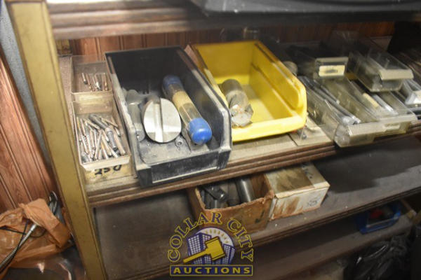 SHELVING UNIT CONTENTS WITH SMALL SHELVING UNIT CONSISTING OF ASSORTED TAPS AND PINS