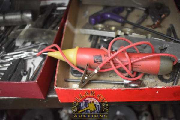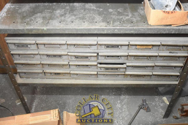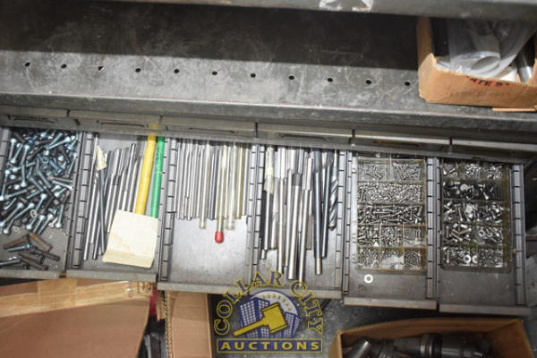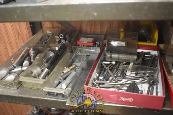 SHELFING UNIT WITH CONTENTS CONSISTING OF TOOL HOLDERS, DRILL BITS, COUNTERSINKS, ETC.
