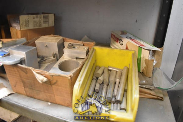 SHELF LOT CONSISTING OF END MILLS, DRILL BITS, BOLTS, BRACKETS, BAGGIES