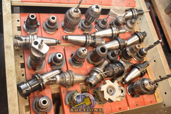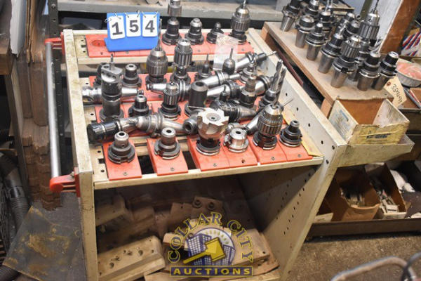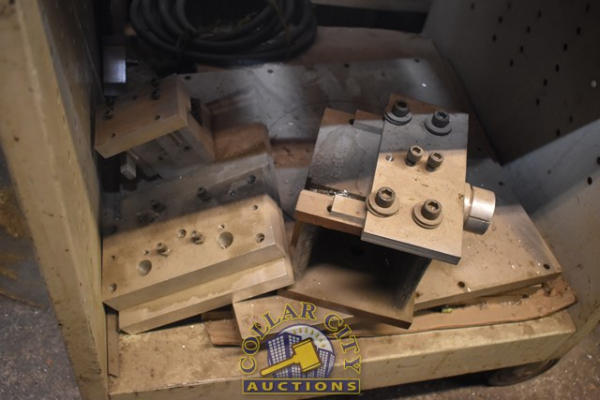 ROLL AROUND CART WITH ASSORTED TAPERED CHUCKS AND TOOLING, ASSORTED HOLD DOWNS, ETC.