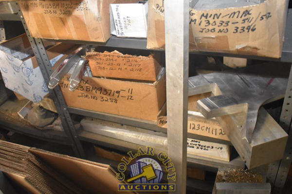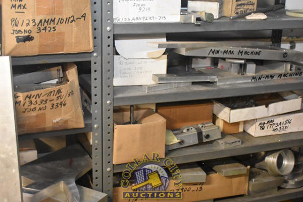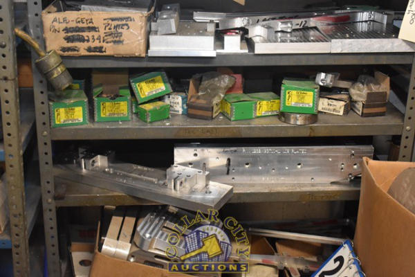 LOT OF 4 SHELVING UNITS, APPROX. 8' TALL, WITH CONTENTS CONSISTING OF BELIEVED TO BE ALUMINUM JIGS