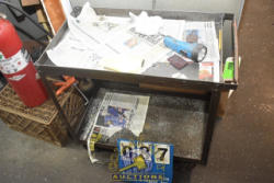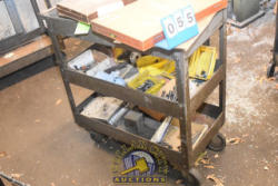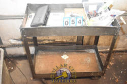 METAL PUSH CART, APPROX. 33" X 30" X 15 1/2", HAS A FLAT STONE (APPROX. 17 1/2" X 12") INCLUDED, AND ASSORTED HOLD-DOWN HARDWARE