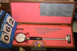 2-DOOR STEEL CABINET WITH CONTENTS CONSISTING OF INDICATOR GAUGES, PARTIAL PIN SETS, TAPE, BLADES, ETC.