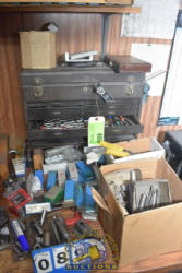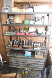 SHELFING UNIT WITH CONTENTS CONSISTING OF TOOL HOLDERS, DRILL BITS, COUNTERSINKS, ETC.