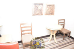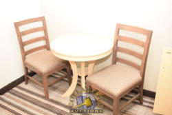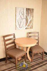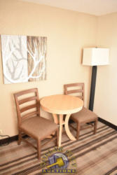 ROOM CONTENTS OF ROOM 609 (2 FULL SIZE BEDS ROOM) CONSISTING OF: APPROX. 60" X 24" 2-DOOR CABINET; APPROX. 30" ROUND TABLE; 2 UPHOLSTERED CHAIRS; 2 VINYL UPHOLSTERED CHAIRS; APPROX. 30" X 30" NIGHTSTAND; LAMPS; 2 FULL SIZE BED FRAMES, HEADBOARDS WITH FREE MATTRESSES AND BOX SPRINGS; DRESSER, APPROX. 60" X 18"; ALARM CLOCK; 1 PEDESTAL LAMP; ASSORTED LAMPS; AMANA HEAT & AIR CONDITIONING UNIT, 240 VOLTS; 2 PLASTIC CHAIRS. MIRRORS ARE NOT INCLUDED.