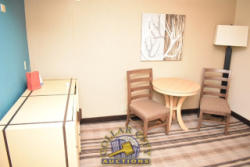 ROOM CONTENTS OF ROOM 512 (DOUBLE FULL SIZE ROOM) CONSISTING OF: 2 FULL SIZE BED FRAMES, WALL MOUNT HEADBOARDS; INCLUDING FREE MATTRESSES AND BOX SPRINGS; AMANA HEAT AND AIR CONDITIONING UNIT, 240 VOLTS; NIGHTSTAND; DRESSER, APPROX. 60" X 18"; APPROX. 68" TALL PEDESTAL LAMP; APPROX. 30" ROUND TABLE; 2-DOOR CABINET; APPROX. 33" SINK; TOILET; IRON AND IRONING BOARD; HAIR DRYER. MIRRORS ARE NOT INCLUDED. BEDDING, TVs, COFFEE MAKERS, ETC., IN ANY PHOTOS ARE NOT INCLUDED.