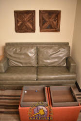 ROOM CONTENTS OF ROOM 618 (KING ROOM) CONSISTING OF: APPROX. 70" PULL OUT COUCH; APPROX. 60" X 24" 2-DOOR CABINET; 2 OTTOMANS; 2 PEDESTAL LAMPS, APPROX. 68"; 2 NIGHTSTANDS, APPROX. 24" X 18"; KING SIZE BED FRAME AND HEADBOARD WITH FREE MATTRESS AND BOX SPRING; AMANA HEATING & AIR CONDITIONING UNIT, 240 VOLTS; ASSORTED PRINTS, APPROX. 30" X 30", 36" X 18". MIRRORS ARE NOT INCLUDED.