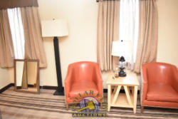 ROOM CONTENTS OF ROOM 507 (KING BED SUITE) CONSISTING OF: KING SIZE BED FRAME, HEADBOARD, INCLUDING FREE MATTRESS & BOX SPRING; 2 END STANDS; LAMPS; DRESSER; APPROX. 60" X 24" 2-DOOR CABINET; SINK & TOILET; ASSORTED CHAIRS; PULL OUT COUCH. MIRRORS ARE NOT INCLUDED. BEDDING, TVs, COFFEE MAKERS, ETC., IN ANY PHOTOS ARE NOT INCLUDED.