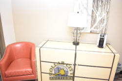 ROOM CONTENTS OF ROOM 603 CONSISTING OF: 2 FULL SIZE BED FRAMES AND HEADBOARDS WITH MATTRESSES AND BOX SPRINGS INCLUDED FOR FREE; END TABLE, APPROX. 22" X 22"; PEDESTAL LAMP, APPROX. 68" TALL; DRESSER, APPROX. 64" X 18", AMANA HEATER & AIR CONDITIONER, 240 VOLTS; 2 PLASTIC CHAIRS; LAMPS; ASSORTED ART WORK, APPROX. 30" X 30", 36" X 18"; ALSO APPROX. 60" X 24" 2-DOOR CABINET, 2 UPHOLSTERED CHAIRS; NIGHT STAND; SINK, TOILET; IRONING BOARD & IRON; BLOW DRYER. MIRRORS ARE NOT INCLUDED.