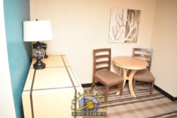 ROOM CONTENTS OF ROOM 517 (KING BED ROOM) CONSISTING OF: KING SIZE BED FRAME, HEADBOARD, INCLUDING FREE MATTRESS & BOX SPRING; 2 NIGHTSTANDS; AMANA HEAT & AIR CONDITIONING UNIT, 240 VOLTS; COUCH; OTTOMAN; APPROX. 60" X 24" DRESSER; APPROX. 33" WIDE SINK; TOILET; IRONING BOARD AND IRON; HAIR DRYER. MIRRORS ARE NOT INCLUDED. BEDDING, TVs, COFFEE MAKERS, ETC., IN ANY PHOTOS ARE NOT INCLUDED.