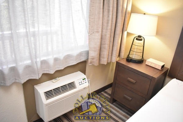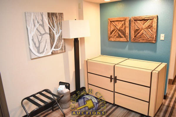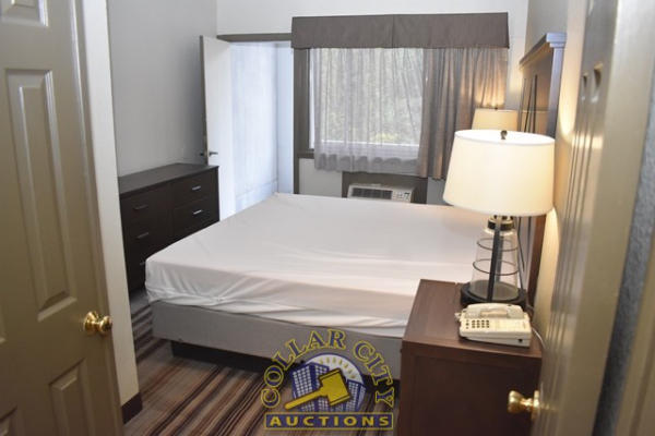 #1 – ROOM CONTENTS OF ROOM 601 CONSISTING OF: PULL OUT COUCH, APPROX. 78" LONG; APPROX. 60" X 24" 2-DOOR CABINET; ASSORTED LAMPS; NIGHTSTANDS; OTTOMANS, APPROX. 18" X 18"; PEDESTAL LAMP, APPROX. 68" TALL; ASSORTED PRINTS, APPROX. UP THROUGH 36" X 36"; KING SIZE BED FRAME; WALL MOUNT HEADBOARD, INCLUDING FREE MATTRESS AND BOX SPRINGS; AMANA HEATER/AIR CONDITIONER, 240 VOLTS; ALSO INCLUDES BATHROOM SINK; IRONING BOARD; HAIR DRYER; IRON; ALARM CLOCK; AND CURTAINS; MIRRORS ARE NOT INCLUDED.