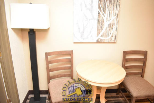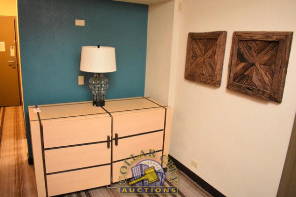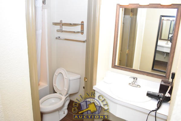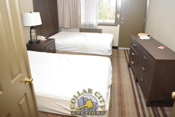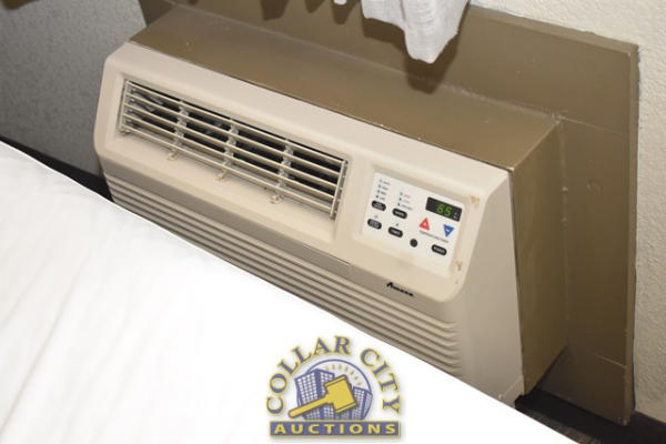 ROOM CONTENTS OF ROOM 602 CONSISTING OF: AMANA HEAT AND AIR CONDITIONER, 220 VOLTS; 2 TWIN SIZE BED FRAMES, HEADBOARDS, AND INCLUDES FREE MATTRESSES AND BOX SPRINGS; HEADBOARDS, NIGHTSTAND, APPROX. 18" X 24"; DRESSER, APPROX. 64" LONG X 18" WIDE; PRINTS, APPROX. 36" X 24"; PEDESTAL LAMP, APPROX. 68" TALL; APPROX. 60" X 24" 2-DOOR CABINET; TABLE, APPROX. 30" ROUND; LAMPS; ARTWORK; TOILET; SINK; BLOW DRYER; IRON & IRONING BOARD, ETC. MIRRORS ARE NOT INCLUDED.