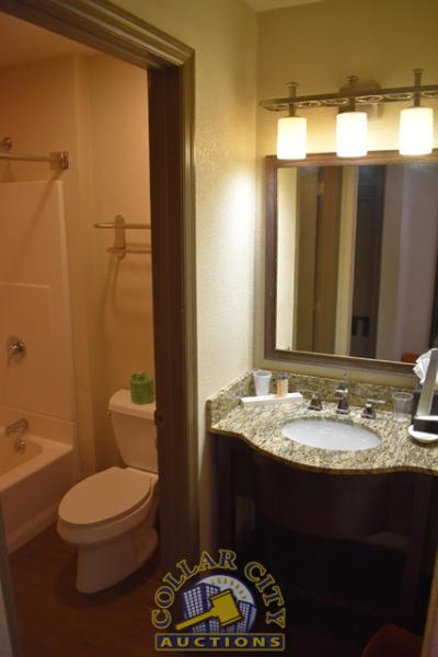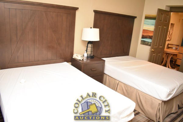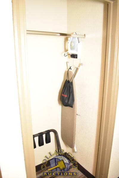 #4 – ROOM CONTENTS OF ROOM 621 CONSISTING OF: PULL OUT COUCH, APPROX. 78" LONG; END TABLE, APPROX. 22" X 22"; ASSORTED LAMPS, PEDESTAL LAMP, APPROX. 68" TALL; APPROX. 60" X 24" 2-DOOR CABINET; APPROX. 30" ROUND TABLE, ASSORTED ARTWORK, APPROX. 30" X 30", 36" X 18"; OTTOMAN/END STANDS, APPROX. 18" X 18"; KING SIZE BED FRAME WITH HEADBOARD, INCLUDES FREE MATTRESS AND BOX SPRING; LAMPS; END TABLES, APPROX. 18" X 24"; CLOCK RADIO; SINK; TOILET; IRONING BOARD & IRON; BLOW DRYER. MIRRORS ARE NOT INCLUDED.