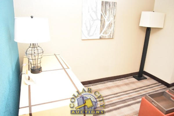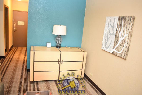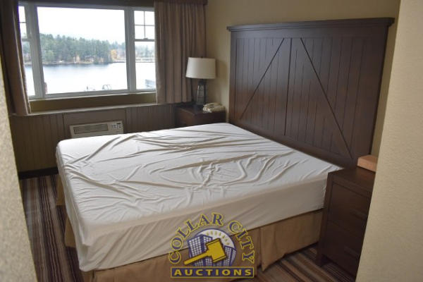 ROOM CONTENTS OF A KING SIZE ROOM CONSISTING OF: APPROX. 60" X 24" 2-DOOR CABINET; 2 OTTOMANS, APPROX. 18" X 18"; PULL OUT COUCH, APPROX. 70"; KING SIZE BED FRAME, HEADBOARD, WITH FREE MATTRESS & BOX SPRING; 2 NIGHTSTANDS, APPROX. 24" X 18", AMANA HEAT & AIR CONDITIONING UNIT, 240 VOLTS; CURTAINS; APPROX. 60" SINK; TOILET; IRONING BOARD & IRON; BLOW DRYER. MIRRORS ARE NOT INCLUDED.