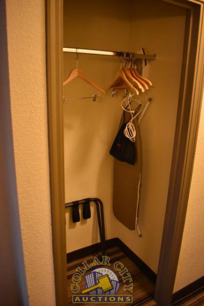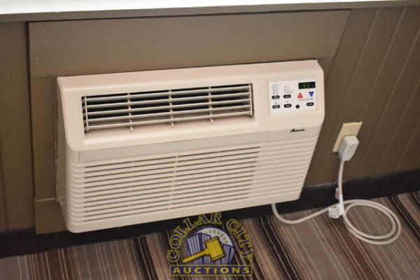 #14 – ROOM CONTENTS OF A KING SIZE ROOM CONSISTING OF: APPROX. 60" X 24" 2-DOOR CABINET; 2 OTTOMANS, APPROX. 18" X 18"; PULL OUT COUCH, APPROX. 70"; KING SIZE BED FRAME, HEADBOARD, WITH FREE MATTRESS & BOX SPRING; 2 NIGHTSTANDS, APPROX. 24" X 18", AMANA HEAT & AIR CONDITIONING UNIT, 240 VOLTS; CURTAINS; APPROX. 60" SINK; TOILET; IRONING BOARD & IRON; BLOW DRYER. MIRRORS ARE NOT INCLUDED.
