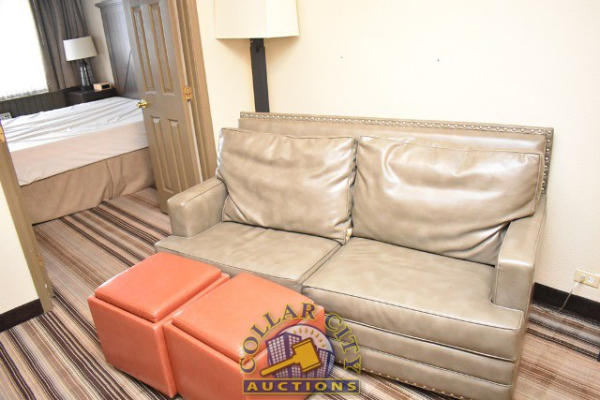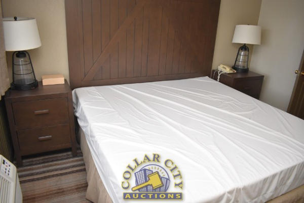 ROOM CONTENTS OF ROOM 613 (KING BED ROOM) CONSISTING OF: KING SIZE BED FRAME AND HEADBOARD, INCLUDING FREE KING SIZE MATTRESS AND BOX SPRINGS; PAIR OF LAMPS; 2 NIGHTSTANDS, APPROX. 24" X 18"; AMANA HEAT AND AIR CONDITIONING UNIT, 240 VOLTS; APPROX. 70" PULL OUT COUCH; 2 OTTOMANS; APPROX. 60" X 24" 2-DOOR CABINET; IRONING BOARD & IRON; HAIR DRYER; APPROX. 33" SINK; TOILET. MIRRORS ARE NOT INCLUDED.