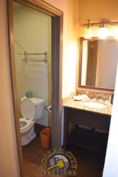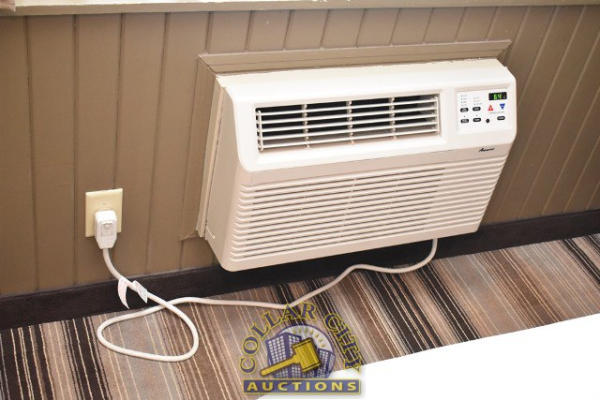 #20 – ROOM CONTENTS OF ROOM 613 (KING BED ROOM) CONSISTING OF: KING SIZE BED FRAME AND HEADBOARD, INCLUDING FREE KING SIZE MATTRESS AND BOX SPRINGS; PAIR OF LAMPS; 2 NIGHTSTANDS, APPROX. 24" X 18"; AMANA HEAT AND AIR CONDITIONING UNIT, 240 VOLTS; APPROX. 70" PULL OUT COUCH; 2 OTTOMANS; APPROX. 60" X 24" 2-DOOR CABINET; IRONING BOARD & IRON; HAIR DRYER; APPROX. 33" SINK; TOILET. MIRRORS ARE NOT INCLUDED.