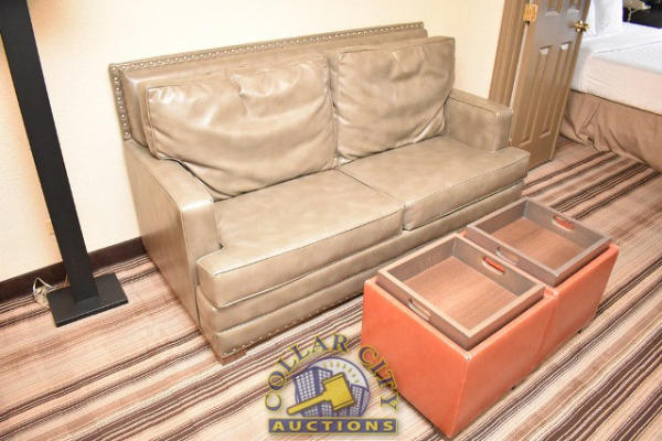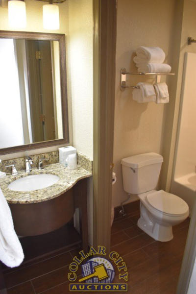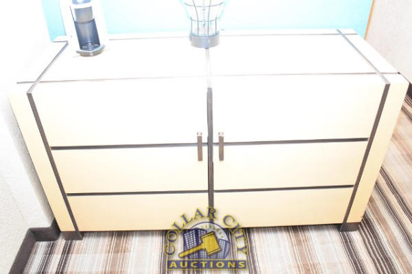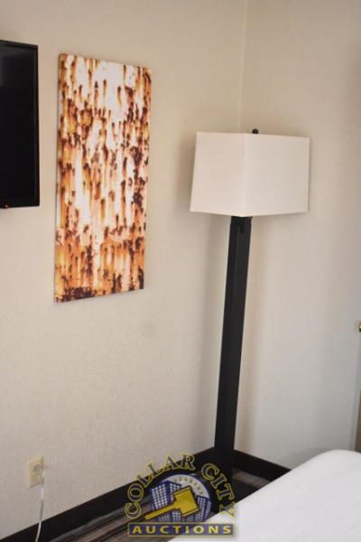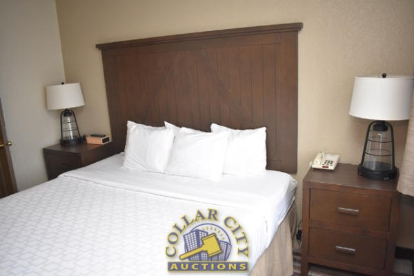 ROOM CONTENTS OF ROOM 523 (KING BED ROOM) CONSISTING OF: KING SIZE BED FRAME, HEADBOARD, INCLUDING FREE MATTRESS & BOX SPRING; DRESSER; NIGHTSTAND; LAMPS; TOILET AND SINK. MIRRORS ARE NOT INCLUDED. BEDDING, TVs, COFFEE MAKERS, ETC., IN ANY PHOTOS ARE NOT INCLUDED.