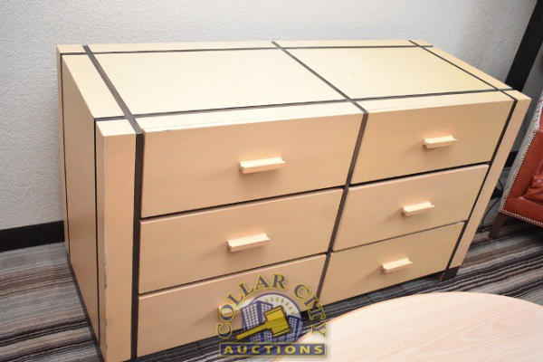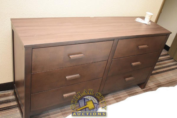 #34 – ROOM CONTENTS OF ROOM 507 (KING BED SUITE) CONSISTING OF: KING SIZE BED FRAME, HEADBOARD, INCLUDING FREE MATTRESS & BOX SPRING; 2 END STANDS; LAMPS; DRESSER; APPROX. 60" X 24" 2-DOOR CABINET; SINK & TOILET; ASSORTED CHAIRS; PULL OUT COUCH. MIRRORS ARE NOT INCLUDED. BEDDING, TVs, COFFEE MAKERS, ETC., IN ANY PHOTOS ARE NOT INCLUDED.